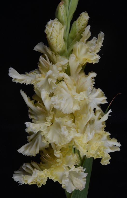 Кремовый с зеленоватой каёмкой на внутренних лепестках. Цветки размером 12 см. Гофрировка очень сильная. В соцветии может быть 7 одновременно открытых цветков.