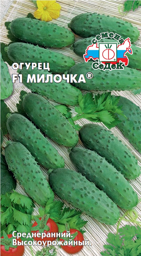Среднеранний (40-45 дня) партенокарпический гибрид для весеннее-летних теплиц и пленочных укрытий. Растение мощное, сильнорослое, среднеплетистое, с пучковым расположением завязей, формирует в каждом узле от 3-4 до 6-8 красивых огурчиков. Зеленцы короткие, выравненные, цилиндрические, крупнобугорчатые, зеленые с короткими светлыми полосами, с маленькими семенными камерами, длиной 8-10 см, с тонким ароматом, хрустящие, плотные, не перерастают. Ценность гибрида: интенсивная отдача раннего урожая, высокие товарные и технологические качества. Рекомендуется для употребления в свежем виде, засолки и консервирования.