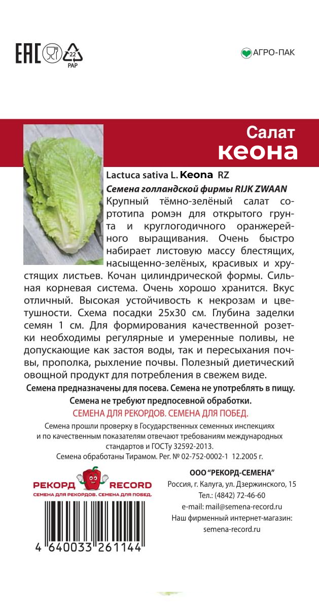 Крупный тёмно-зелёный салат сортотипа ромэн для открытого грунта и круглогодичного оранжерейного выращивания. Очень быстро набирает листовую массу блестящих, насыщенно-зелёных, красивых и хрустящих листьев. Кочан цилиндрической формы. Сильная корневая система. Очень хорошо хранится. Вкус отличный. Высокая устойчивость к некрозам и цветушности.